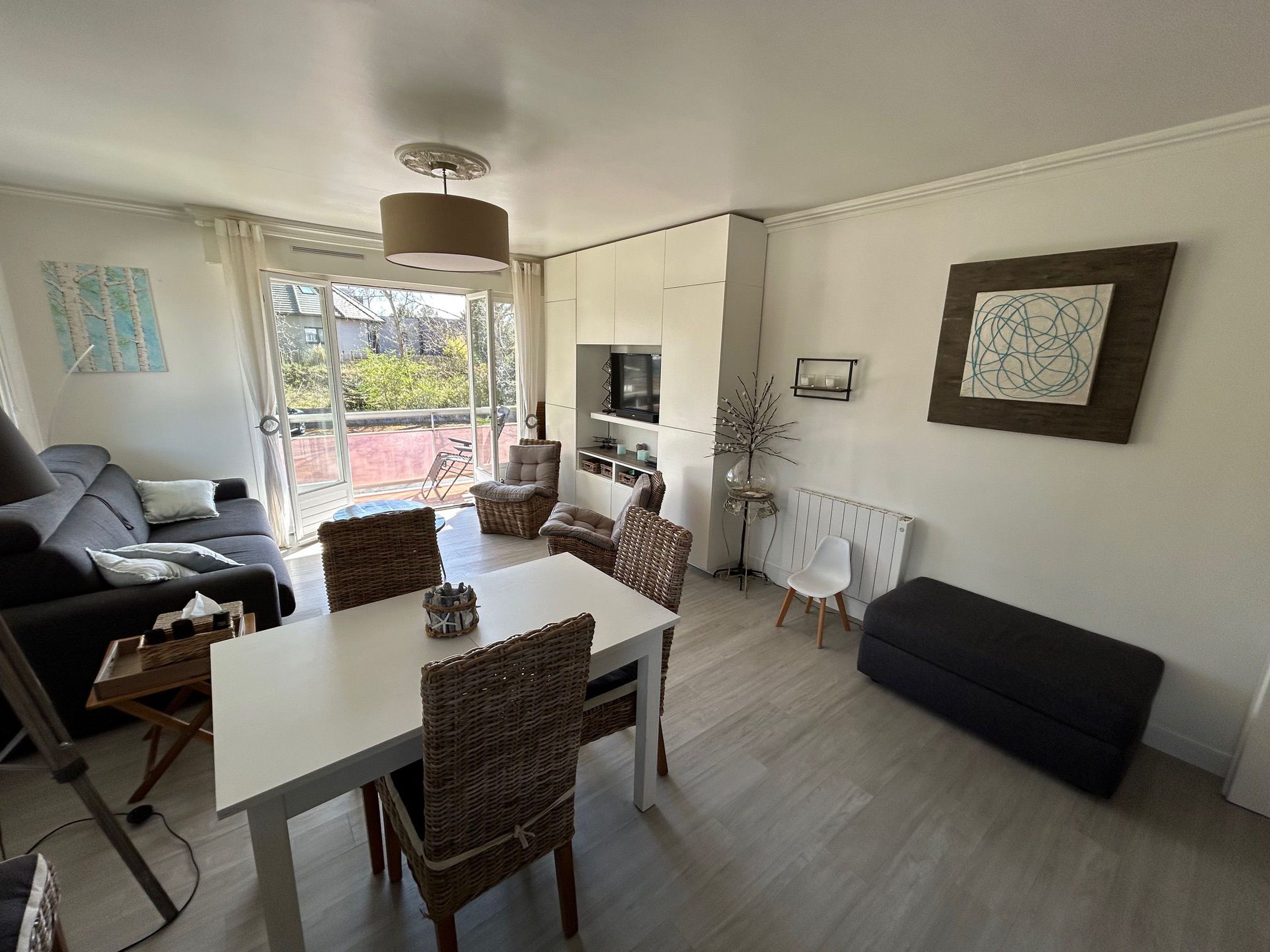 Situé secteur Les Pelouses à 2 kilomètres de la plage, appartement en excellent état, rénové, comprenant entrée, cuisine équipée, séjour très lumineux donnant sur une terrasse exposition sud, une chambre avec placard, une salle de douche, wc indépendant.